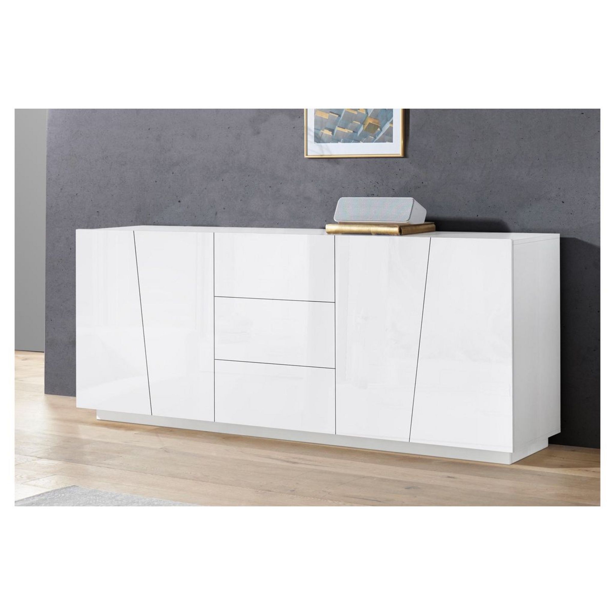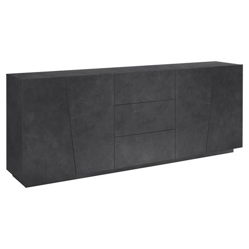 Le buffet 4 portes Verona apporte un grand espace de rangement avec une longueur de 2 m, avec 3 tiroirs supplémentaires. Son design original et ses lignes décalées en font un meuble design et intemporel.