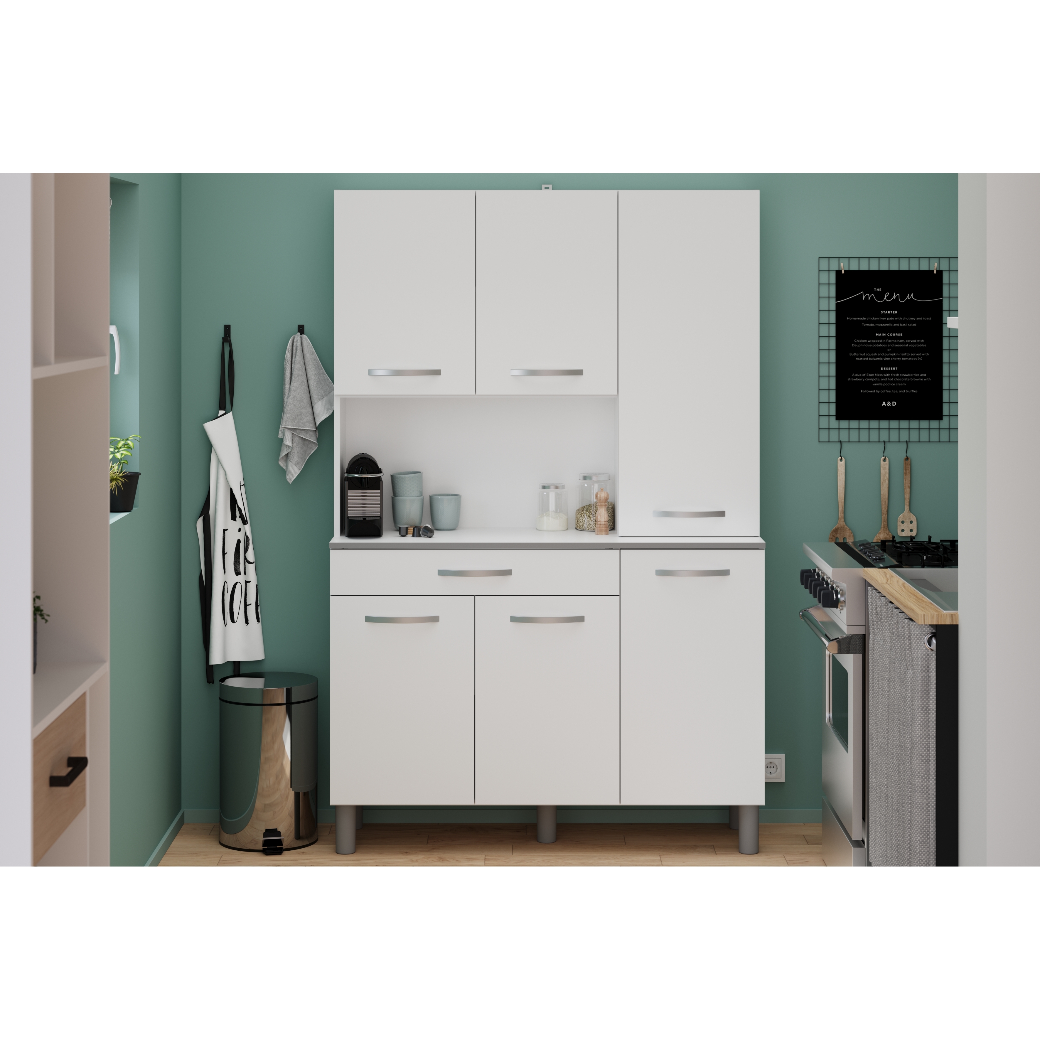 - Conception fonctionnelle : Un tiroir et six portes pour un stockage optimal, ainsi qu'une niche décorative.