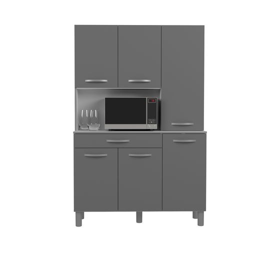 Doté d'un tiroir et de six portes, ce buffet de cuisine EKIPA maximise le rangement tout en garantissant un accès facile à vos ustensiles. La niche intégrée permet une mise en valeur décorative de vos objets préférés. Les panneaux de particules mélaminés 16 mm assurent une robustesse exceptionnelle pour un usage quotidien intensif.