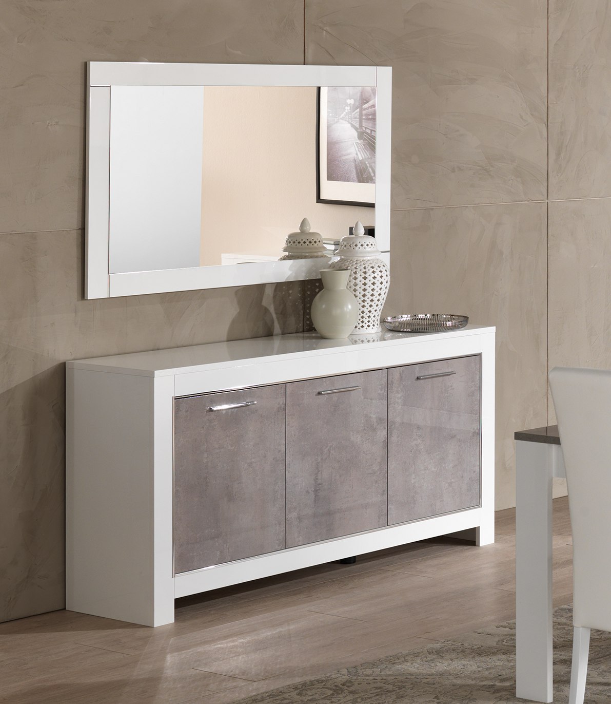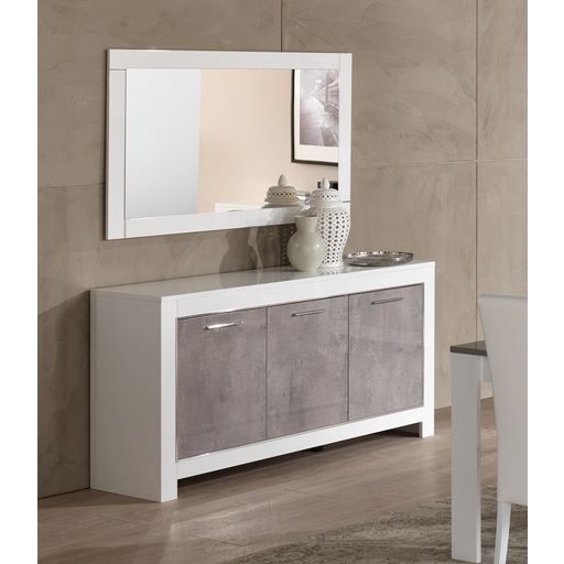 En savoir +Le buffet Milano vous séduira par son côté moderne et design qui se marie aisément avec l'ensemble de vos meubles. Coloris blanc laqué intemporel, ce buffet est associé au gris sur les portes lui procurant originalité. Il est également très pratique grâce à son volume de rangement. Il dispose de 3 portes battantes avec 2 étagères à l'intérieur.