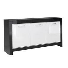 Buffet design moderne 3 portes laqué brillant bicolore L160 cm MILANO