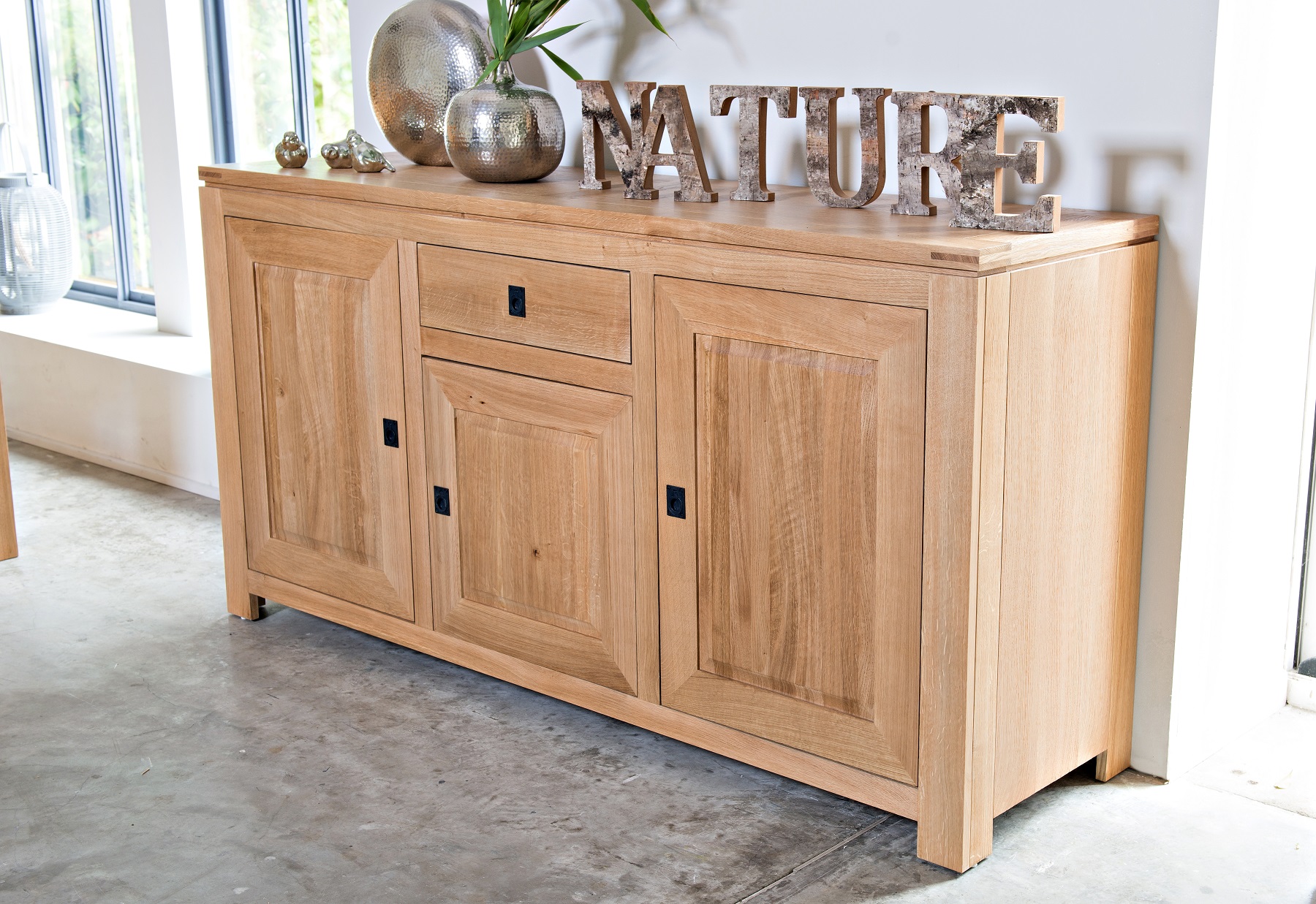 Bahut 3 portes 1 tiroir. La structure du buffet est réalisée en chêne massif de 25 mm d'épaisseur.