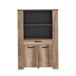 Le buffet haut TORSTEN, avec ses dimensions de L110 x H161 x P40 cm, est un meuble de rangement élégant et pratique. Composé de panneaux de particules robustes, il dispose de 2 portes, 1 tiroir et 1 étagère, offrant un espace de rangement optimisé pour organiser votre intérieur. Son coloris chêne authentique et noir lui confère un design moderne et raffiné, parfait pour s'adapter à tout style d'intérieur. Fabriqué en France, il combine qualité et esthétisme pour un meuble fonctionnel et durable.
