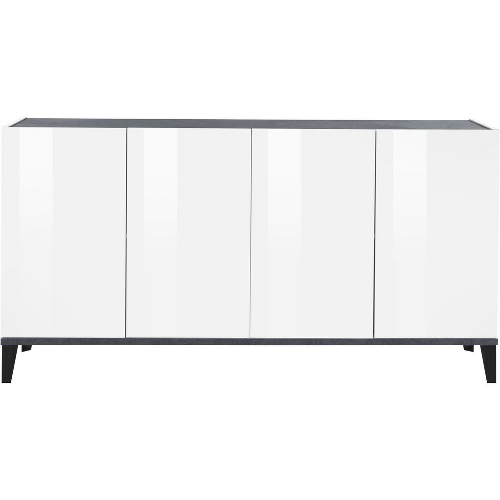 Le buffet 4 portes et 1 tiroir est parfait pour les pièces recherchant du rangement pratique et facile d'accès. Plusieurs associations de couleurs possibles, blanc/bois, ardoise/bois ou blanc ardoise, font de ce meuble un élément design de vos salon ou séjour. Avec ses pieds noirs, il vous assure un style très moderne à votre intérieur !