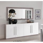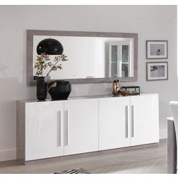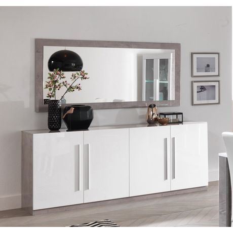 Buffet moderne laqué blanc brillant décor bêton marbré 4 portes TORINO