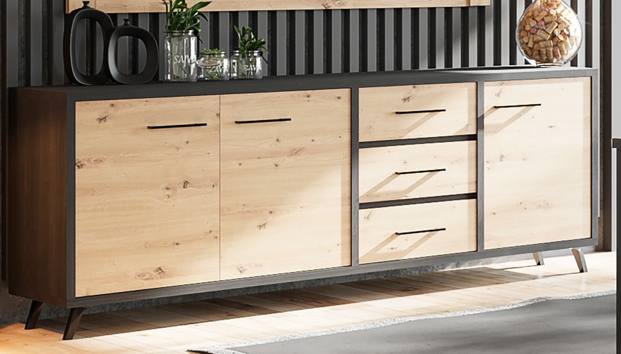 Le buffet VIVA apportera une ambiance industrielle dans votre salle à manger. Pratique, il dispose de 3 portes et 3 tiroirs pour un rangement optimal!