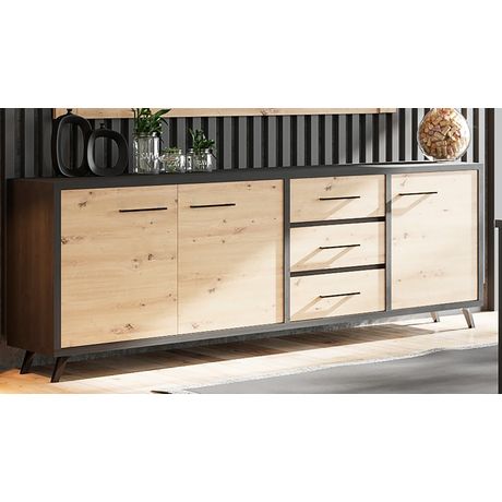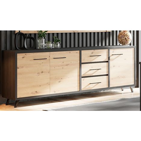 Buffet moderne style industriel 3 portes 3 tiroirs L216cm VIVA