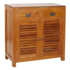 Donnez une inspiration exotique à votre décoration avec ce buffet en teck massif. Ses 2 portes persiennes vous promettent de nombreux rangements. On aime : les poignées en laiton vieilli des 2 tiroirs pour le côté authentique !