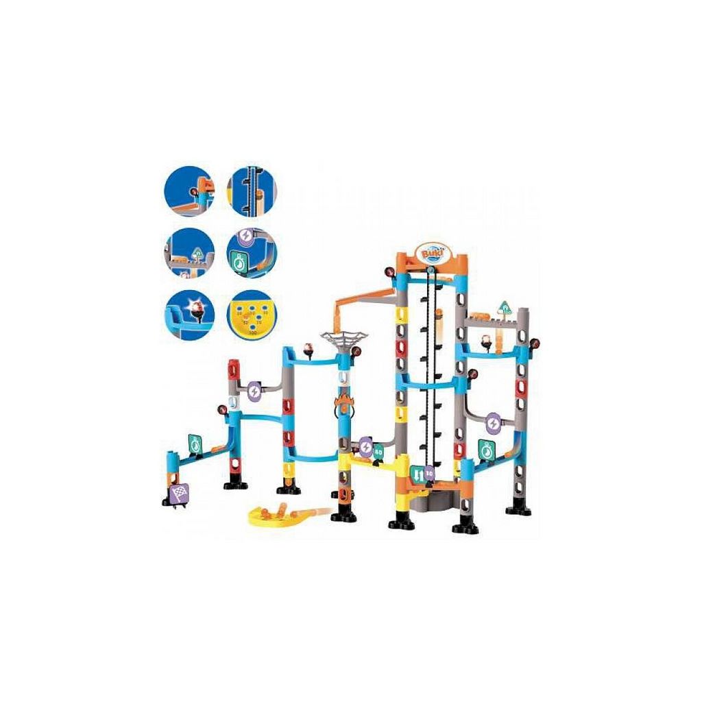 Découvrez la Formule Méga de Billes, un jeu fascinant qui vous permet de construire un labyrinthe interactif. Assemblez les différents éléments pour créer un parcours captivant pour la bille tout en évitant qu'elle ne tombe. Placez les modules à votre guise pour déclencher des effets sonores et lumineux. Ce jeu comprend un ascenseur de 60 cm avec deux vitesses de jeu, offrant des heures de divertissement. Contient une notice illustrée en couleurs avec quatre modèles de labyrinthe. Idéal pour les enfants dès 7 ans. Poids : 1.4 kg, Dimensions : 39.9 x 39.9 x 15.0 cm.