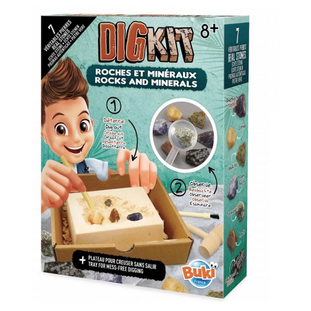 Kit d'Exploration de Roches et Minéraux - Découverte de 7 Pierres Précieuses à Déterrer