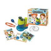 Mini sciences microscope permet à votre enfant de découvrir l'univers qui l'entoure. Votre enfant peut placer les objets qu'il souhaite sous la lampe éclairée afin d'explorer le monde du minuscule. Le microscope binoculaire permet un agrandissement X10. L'ensemble des accessoires sont adaptés aux plus petits. Votre enfant pourra également s'aider des 10 fiches disponibles, entièrement illustrées.Un livret vous est dédié afin d'accompagner votre enfant dans ses explorations.