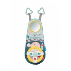 Un volant musical pour jouer pendant les trajets en voiture ! Bébé trouvera le klaxon et ses sons rigolos, le levier de vitesses, le bruit de démarrage et les boutons pour déclencher musique et lumières, un miroir. Les sangles sont réglables et permettent de fixer le volant sur la plupart des sièges de voiture. Apport au développement:. - Bébé développe ses fines et grosses motricités en tournant le volant et le levier de vitesses et en appuyant sur les boutons du volant. - Bébé apprend la relation de cause à effet en appuyant sur les boutons qui vont activer les sons et lumières