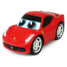 Ce joli bolide de la célèbre marque italienne Ferrari est la parfaite première voiture radiocommandée pour votre enfant. Simple d'utilisation, la voiture se dirige grâce à un volant qu'il suffit de tourner et deux boutons : le bouton vert pour la marche avant et le bouton rouge pour la marche arrière. Et pour encore plus de réalisme, la Ferrari émet de vrais sons, ses phares avants et arrières s'allument et elle est également équipée d'un klaxon.