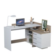 Bureau d'angle 3 tiroirs et rangements L128cm PITA