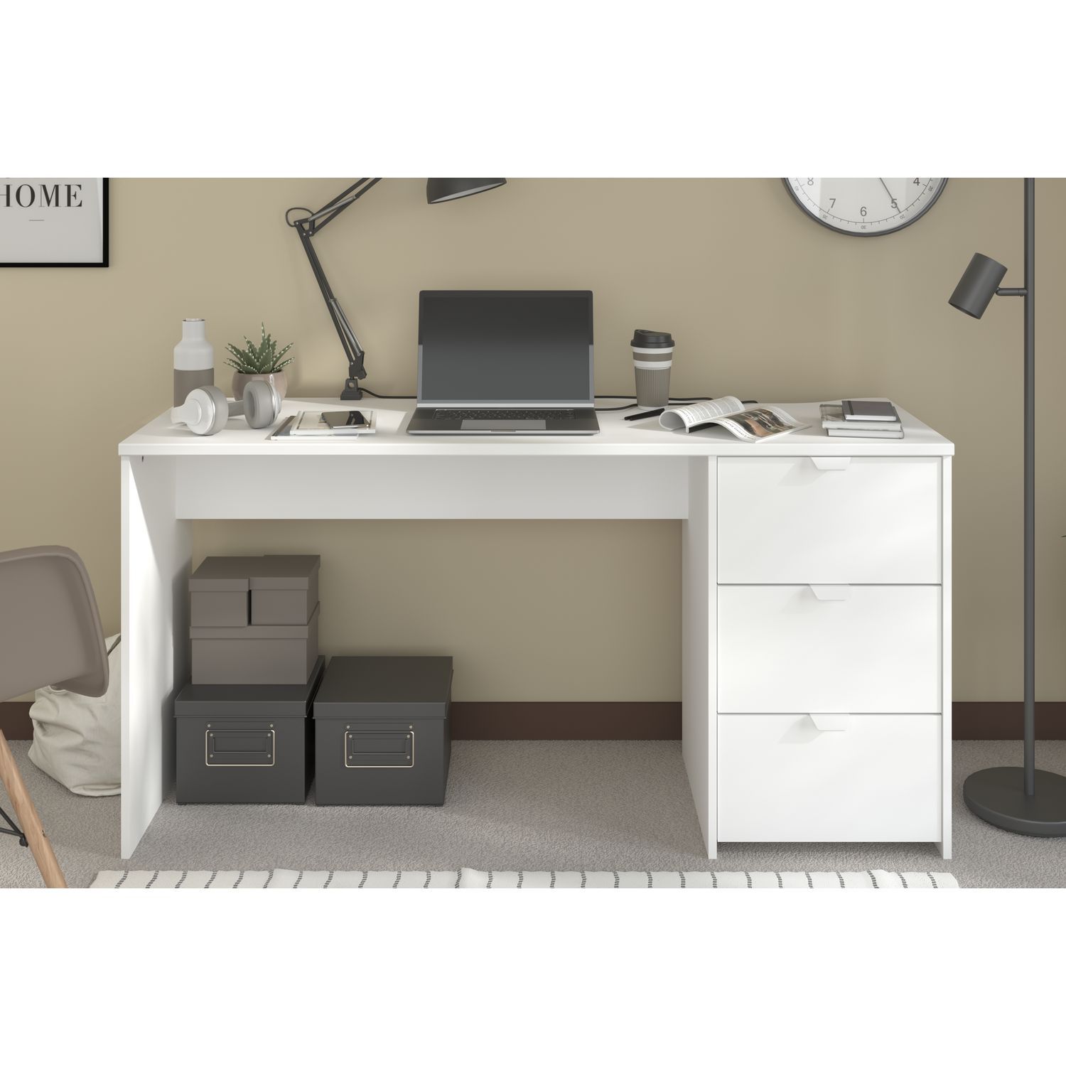 Le bureau droit White est un bureau classique et intemporel dont vous ne vous lassez pas. Dans un bureau, une chambre ou même votre pièce de vie, il se font dans le décor avec son design épuré. Il est également très pratique avec ses 3 tiroirs qui permettront d'y ranger fournitures ou dossiers.