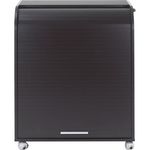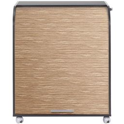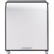 Bureau droit à roulettes L79.2cm BILLY, idéal pour optimiser l'espace de travail. Équipé d'une tablette coulissante pour clavier, d'une niche réglable pour imprimante et de rangements supplémentaires. Les 4 roulettes facilitent son déplacement. Design noir avec rideau imprimé, dispose d'un passage pour câbles et fermeture à clé pour sécuriser vos affaires. Dimensions : L79.2 x H93.8 x P53.2 cm. Parfait pour un usage informatique efficace et organisé.