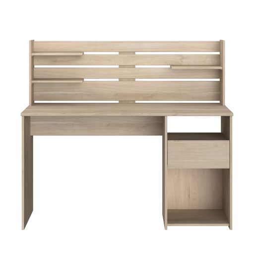 Le bureau droit PIA en imitation chêne est conçu pour offrir un espace de travail spacieux, idéal pour accueillir de grands écrans d'ordinateurs. Grâce à ses nombreux rangements, il est parfait pour organiser vos fournitures avec ses 3 tablettes amovibles, 1 tiroir et 2 niches. Les tablettes sont ajustables en 6 positions pour personnaliser l'aménagement selon vos besoins.