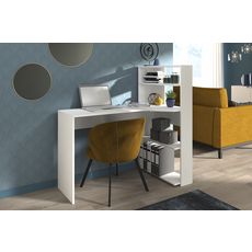 Le bureau Twister fabriqué en France, est un bureau peu encombrant et pratique grâce à une bibliothèque placé sur le côté. Sa faible profondeur permet un gain de place tout en ayant suffisamment de rangement. Avec son coloris blanc neutre, il s'adapte facilement dans votre intérieur.