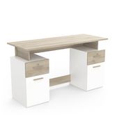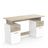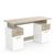 Panneaux de particules, épaisseur 15mm. Décor papier chêne kronberg sur les tiroirs et sur-meuble, décor papier blanc mat pour les 2 portes. Plateau du dessus, épaisseur 18mm, charge max. 30kg. 2 niches fermées : dim. utiles 31,3 x 38,9 x 41,3cm. 2 tiroirs sur coulisses à billes : dim. utiles 28 x 38,7 x 10,6cm, charge max. 2kg. 2 serrures avec 1 jeu de 2 clés pour chacune. Poignée barrette laquée chêne kronberg."