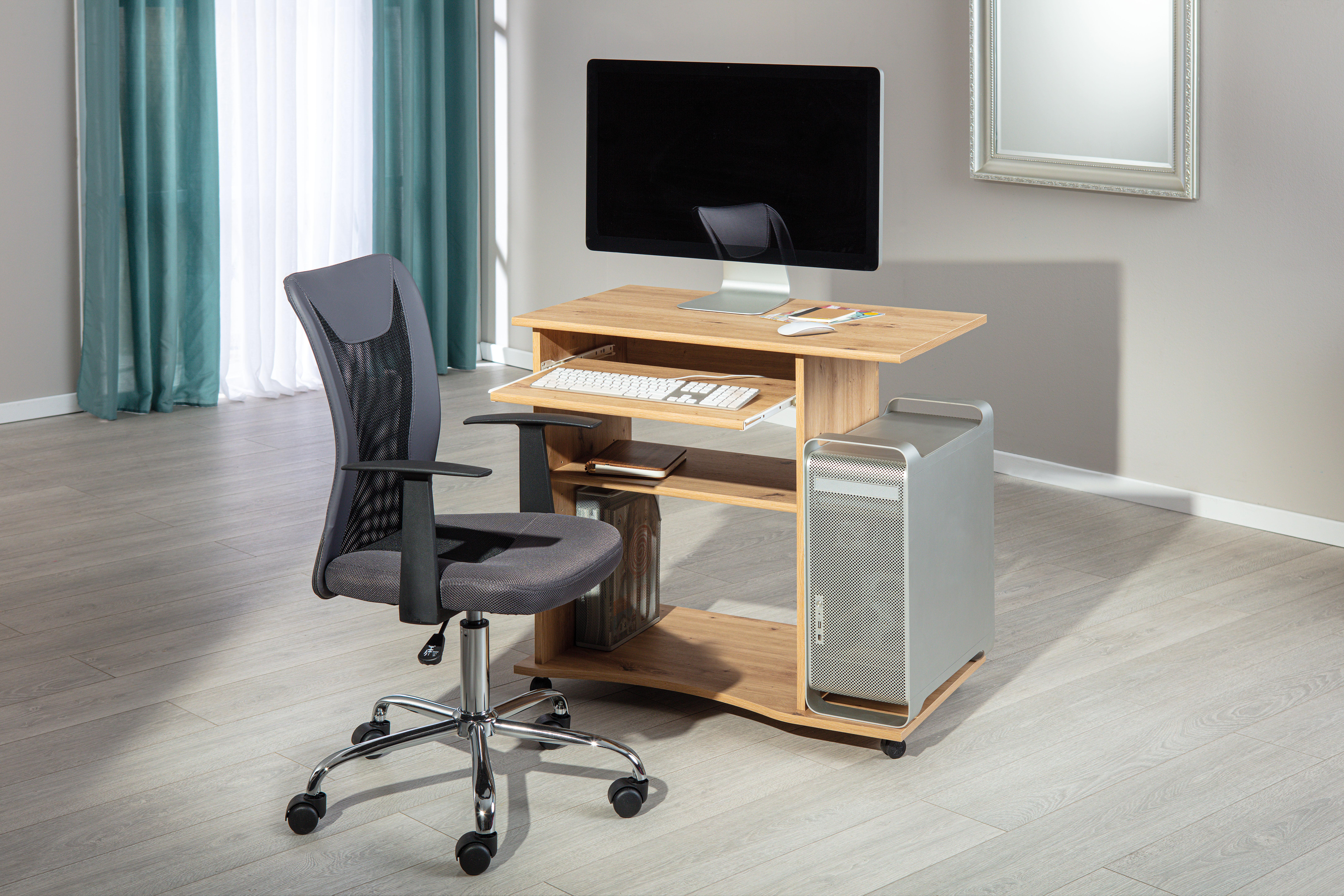 Bon produit bureau conforme à la description. Juste un petit bémol sur les roulettes en plastique qui ne sont pas assez robuste je les ai remplacées par des plus robustes . Mais super bureau bien solide et facile à monter.