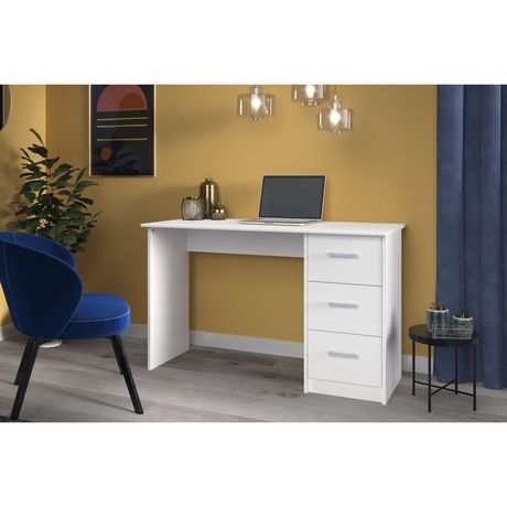 Un bureau simple et efficace avec 3 tiroirs de rangement qui le rendent pratique et fonctionnel. Disponible en coloris blanc, Acacia clair, Chêne/Noir ou Blanc / Chêne , il s associe facilement dans un bureau ou même votre pièce de vie. Bref, un bureau droit de qualité et fabriqué en France !