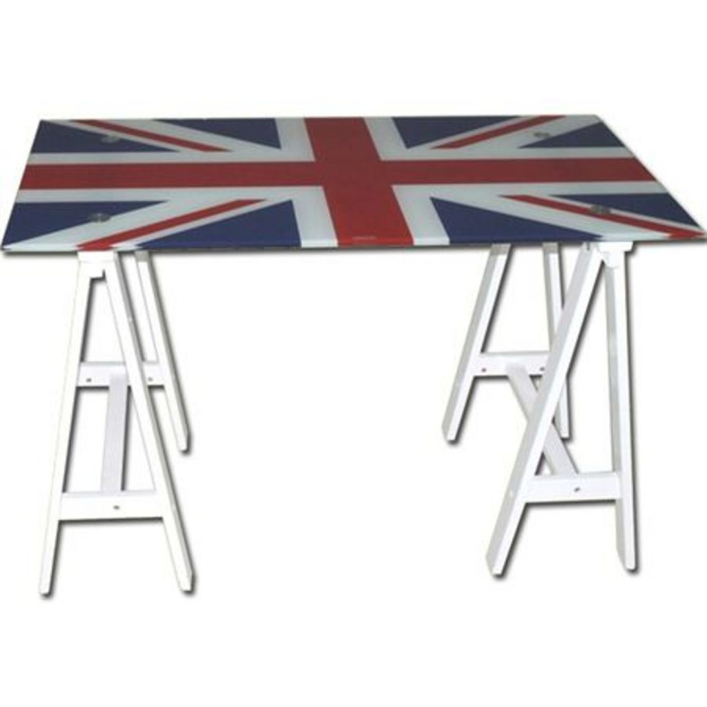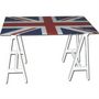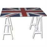 -tréteaux en chêne massif blanc laqué -plateau en verre trempé 10mm sérigraphié du drapeau anglais