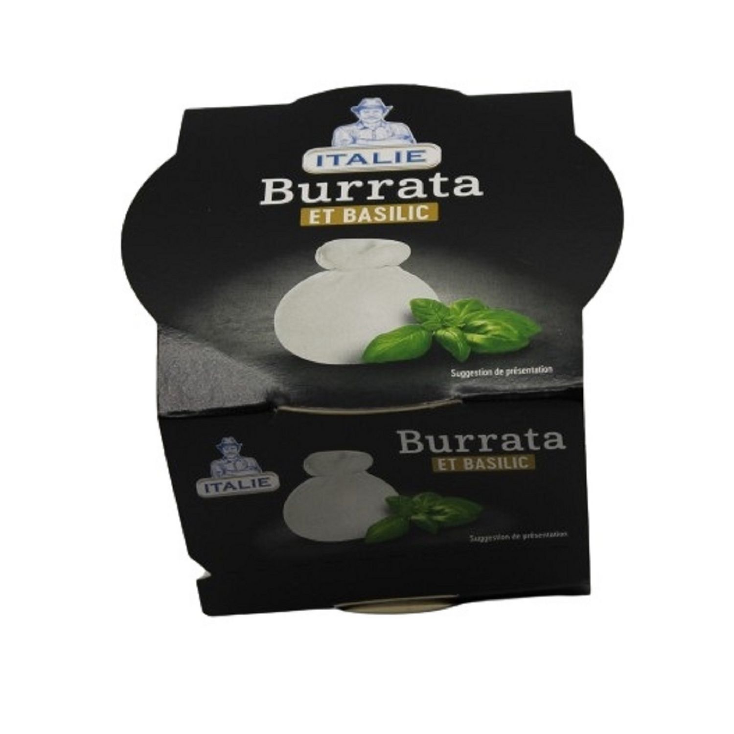 la Burrata renferme en son cœur la Stracciatella qui lui confère un goût crémeux inimitable. Son parfait mélange au basilic en fait un met raffiné qui saura sublimer tous les plats. Fabriquée dans la région des Pouilles en Italie, berceau de la burrata, son authenticité est garantie avec la mise en œuvre d'un lait et d'une crème 100% origine Italie.