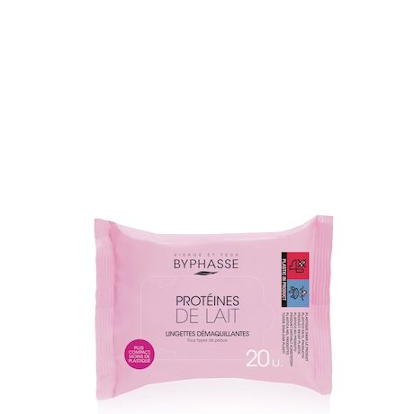 BYPHASSE LINGETTES DÉMAQUILLANTES AUX PROTÉINES DE LAIT TOUS TYPES DE PEAUX 20 UNITÉS