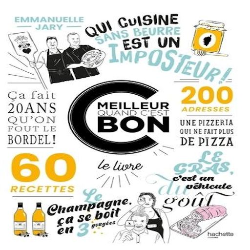 Le livre de C'est meilleur quand c'est bon, l'émission aux millions de vues, arrive enfin en librairie. Porté par Emmanuelle Jary, et Mathieu Pansard à la caméra, ce programme court, diffusé sur Internet, chronique des restaurants partout en France ainsi que des recettes faciles filmées avec humour. Retrouvez au fil des pages l'univers drôle et léger du couple qui réinvente l'émission culinaire. Vous y découvrirez : - Le fish and chips, la terrine de courgettes au basilic et au parmesan, le boeuf bourguignon, les spaghettis aux boulettes pas chères, l'osso buco, le gâteau au chocolat ganache inratable... mais aussi des recettes inédites qu'Emmanuelle n'a jamais livrées. - Les recettes des restaurateurs de vos épisodes préférés : l'entrecôte et ses 3 sauces (La Java Bleue), le nougat glacé (Chez Erwan), les boulettes de mamie Georgette (Will's Deli)... - Des focus produits, des conseils et, surtout, un carnet d'adresses pour visiter la France autrement, et retrouver tous les restaurants filmés et bien d'autres encore ! Emmanuelle Jary : Après 10 ans d'ethnologie et 20 ans de journalisme, Emmanuelle Jary, qui entend défendre une certaine idée de la cuisine et de la restauration alliant plaisir, engagement et connaissance, lance en 2016, l'émission C'est meilleur quand c'est bon, un programme court disponible sur Youtube, Facebook, Instagram et le site dédié (www. cestmeilleurquandcestbon. com).