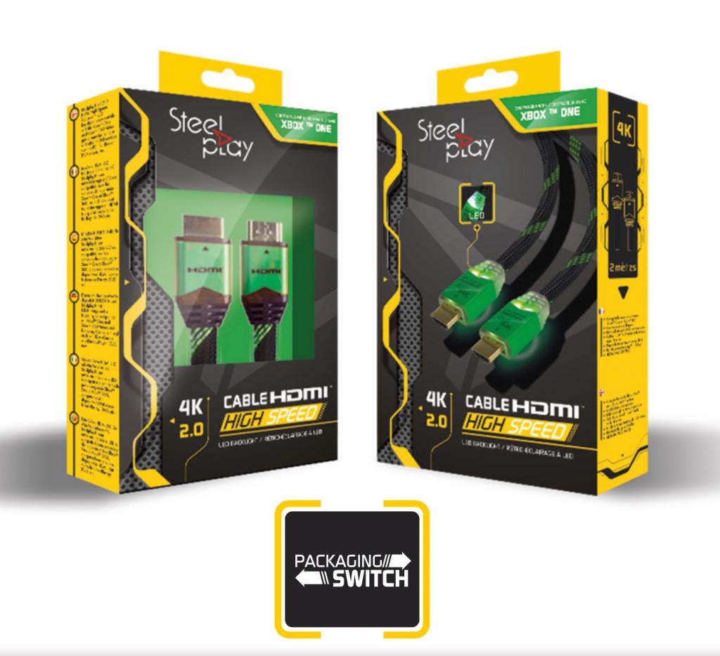 Le câble HDMI 2.0 Haute-performance 4K Steelplay® est compatible avec les consoles de jeux vidéo Xbox One et Xbox 360, les ordinateurs et tout autre appareil HDMI tels que les lecteurs de Blu-Ray, de DVD, etc.