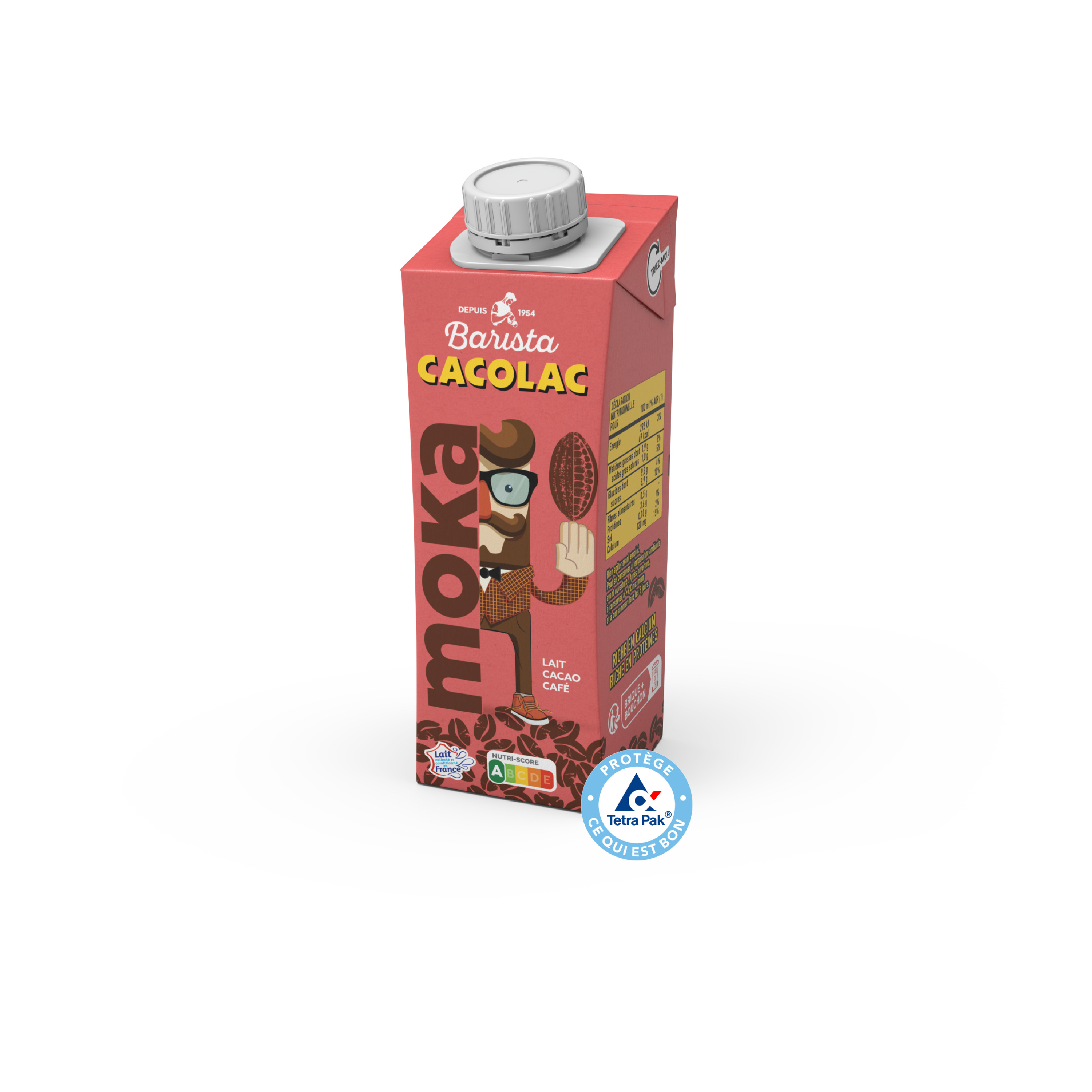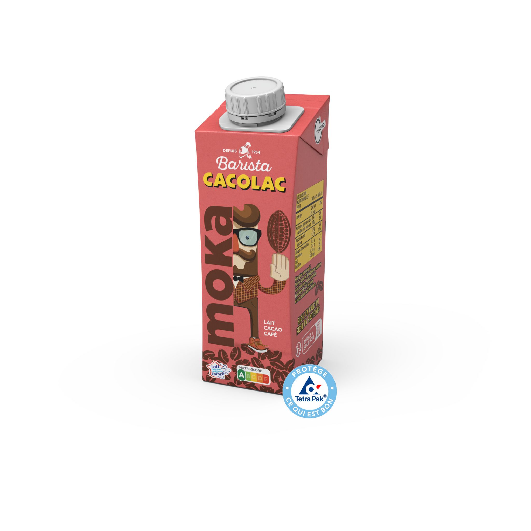 Ingrédients : LAIT demi-écrémé 94%, sucre, café soluble 0,8%, cacao 0,8 %, aromes naturels, stabilisant: gomme gellane.