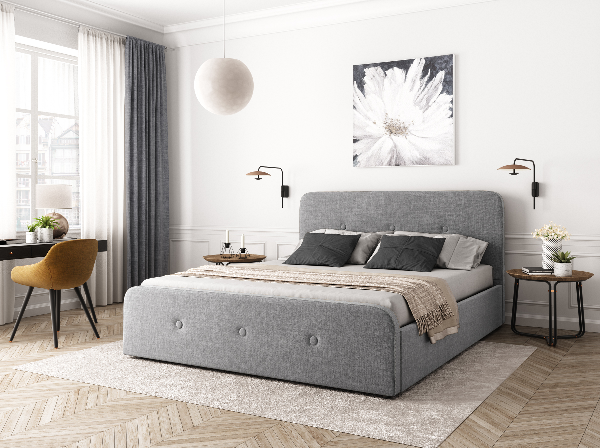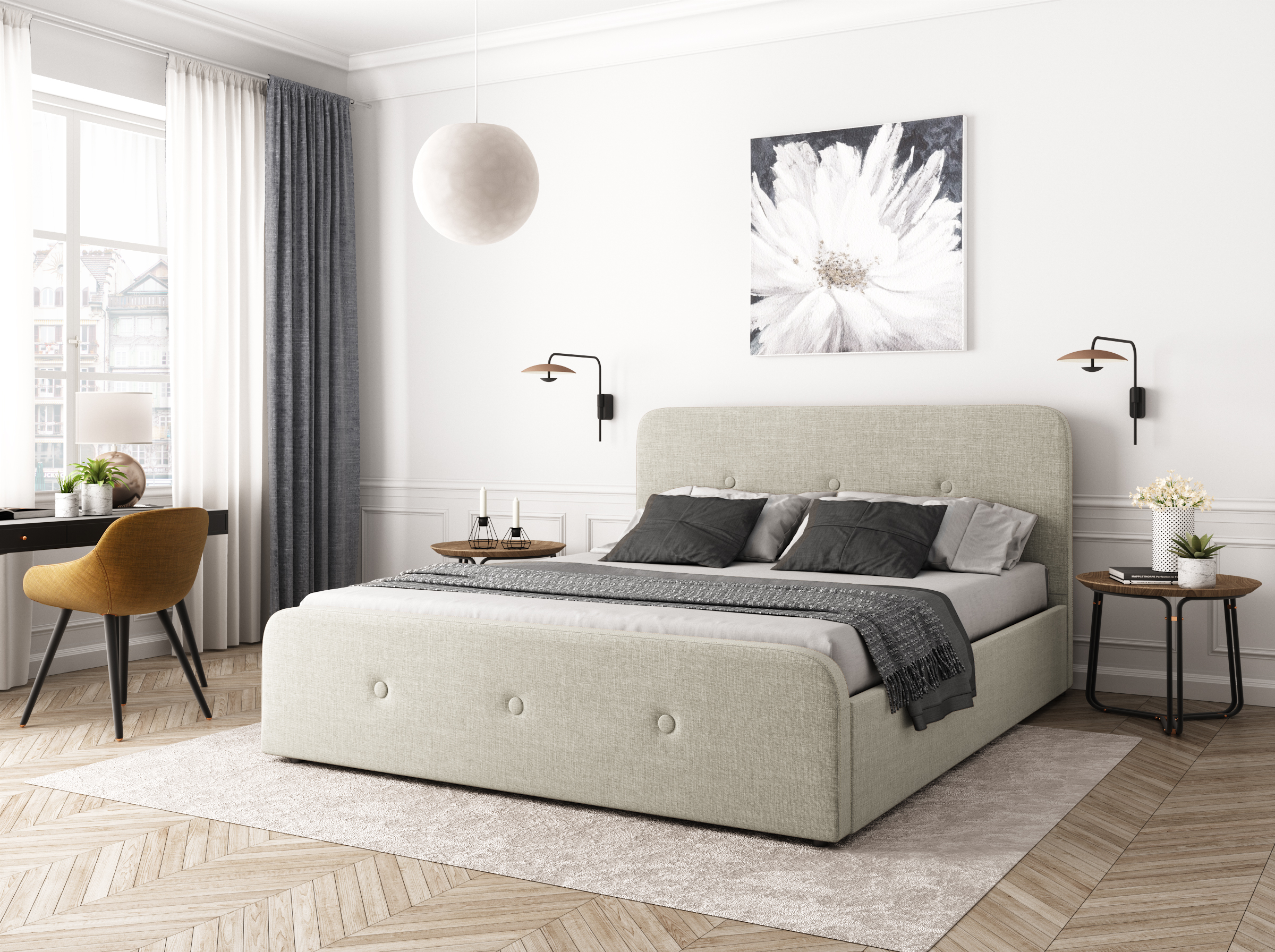 Le cadre de lit BERGEN apportera modernité et confort à votre chambre. Il suffit de relever le sommier en toute simplicité pour profiter du large coffre dont bénéficie ce cadre de lit au style moderne et cosy.