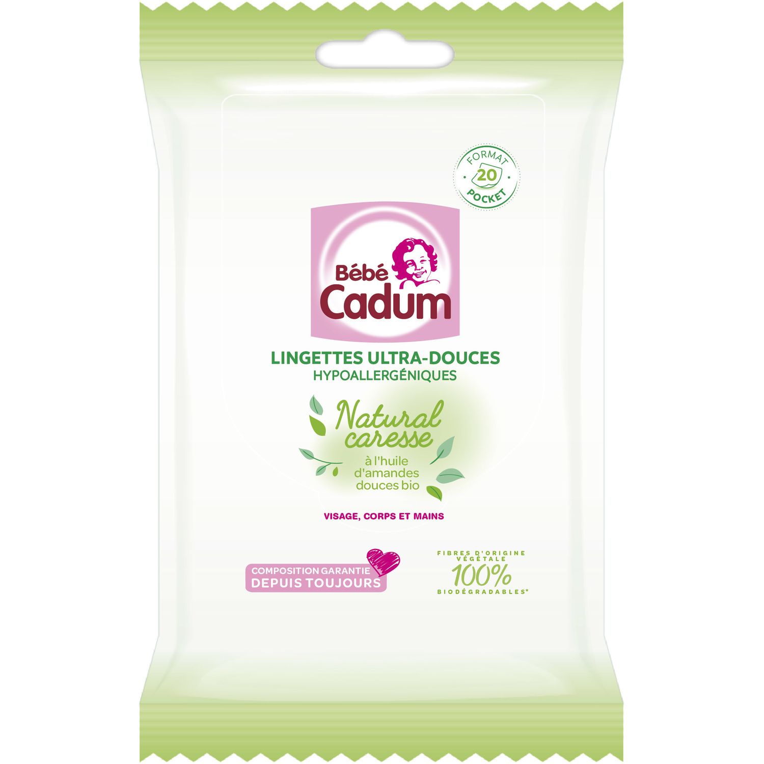 Bébé Cadum Lingettes Bébé Ultra-Douces Hypoallergéniques en format pocket x20