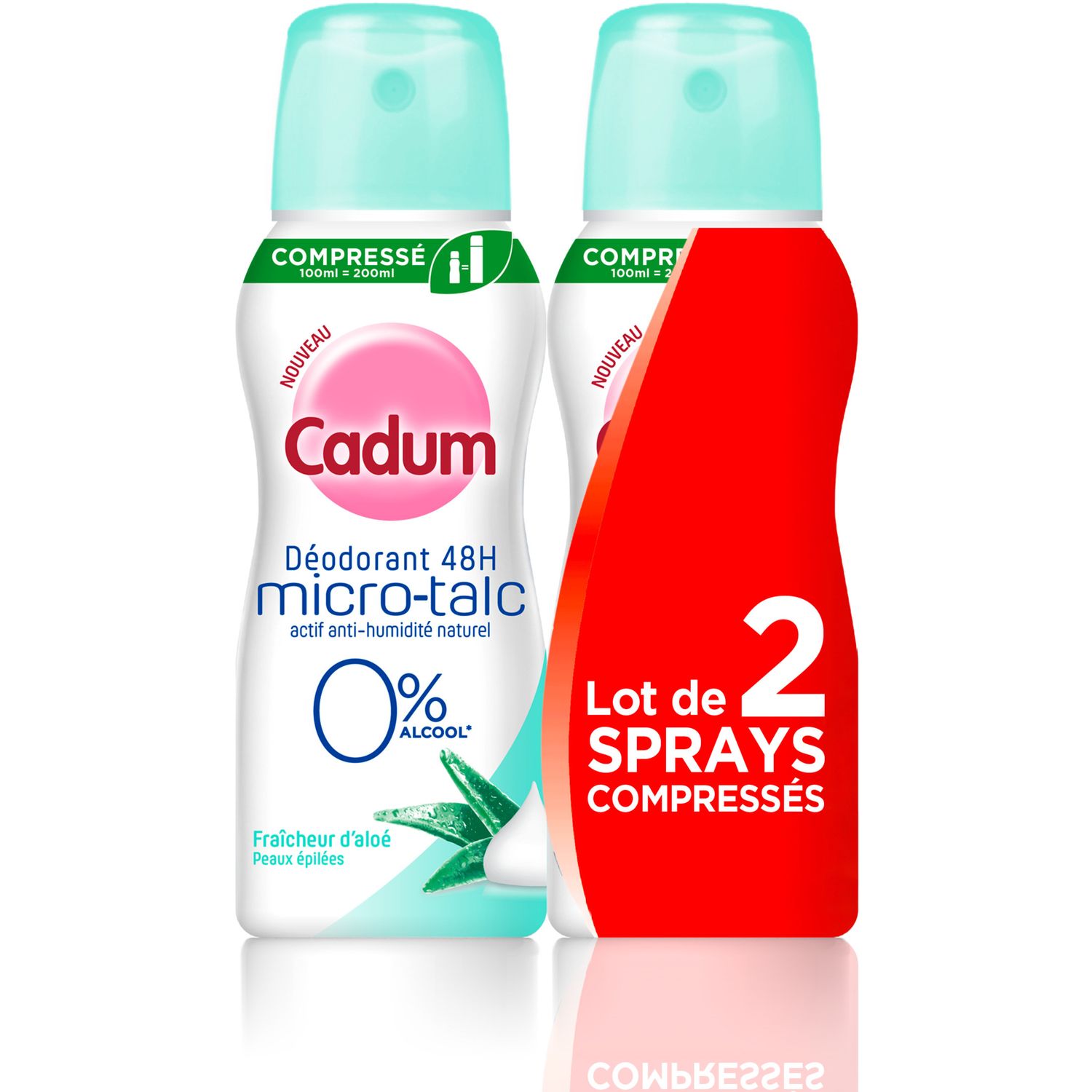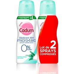 Cadum Déodorant 48h micro-talc anti-humidité 0% d'alcool à l'aloé 2x100ml