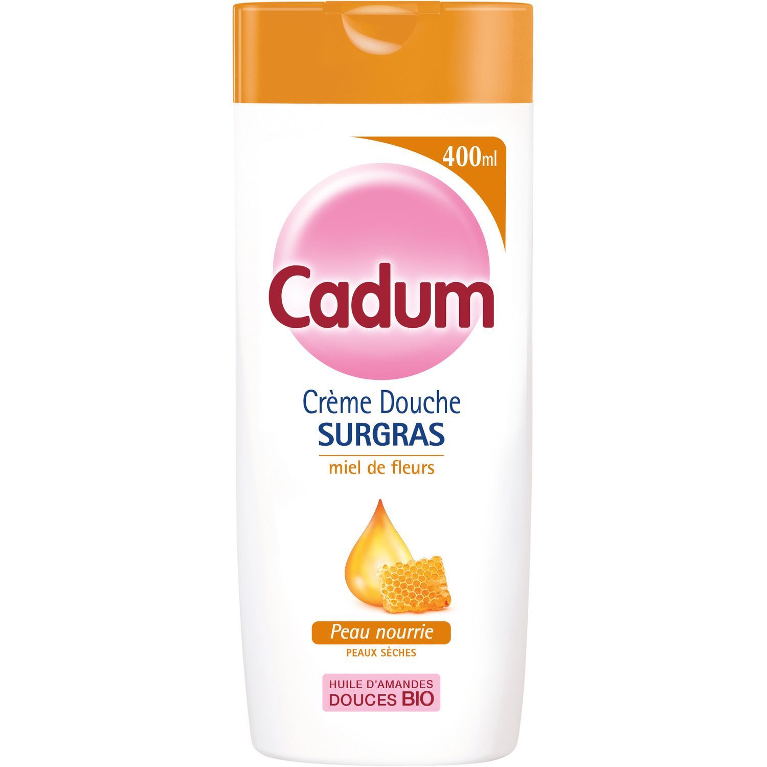 Cadum Surgras Crème Douche Surgras au Miel de Fleurs 400.0ml Cadum, spécialiste de la douceur depuis 1907, a mis tout son savoir-faire dans cette formule douche Surgras enrichie en huile d'amandes douces Bio et en Miel de Fleurs Bio pour nettoyer en douceur et protéger les peaux sèches. Dès la première application, la peau est nourrie, confortable et aussi douce qu'une peau de bébé.