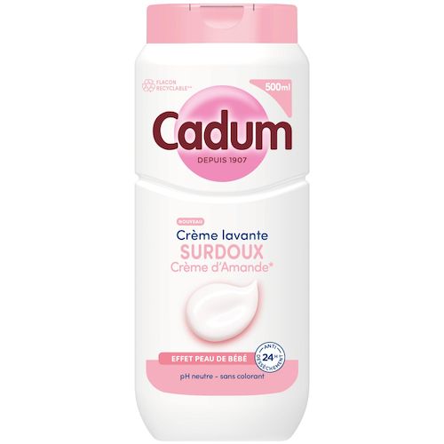 Depuis plus d’un siècle, Cadum met tout son savoir-faire au service de la douceur. Créée en 1907, la marque accompagne les familles avec des soins pensés pour respecter toutes les peaux, même les plus sensibles. Cette crème lavante au parfum Crème d'Amande*** s’inscrit dans cette tradition et offre un moment de confort unique au quotidien. Sa texture crème nettoie délicatement et laisse la peau douce comme celle d'un bébé. Sa formule enrichie en huile d’amande douce bio, selectionnée pour ses vertus naturellement nourisstantes, offre un soin 24h anti-dessèchement. Son parfum doux et gourmand parfume délicatemment la peau. Testée sous contrôle dermatologique, sa formule au pH neutre, sans savon ni colorant, respecte parfaitement l’équilibre cutané de toute la famille dès 3 ans. Et pour allier soin et responsabilité, Cadum propose désormais un flacon recyclable* et composé à 70 % de plastique recyclé**. Il est aussi plus léger : -13% de plastique par rapport à l’ancien flacon 450 mL.