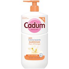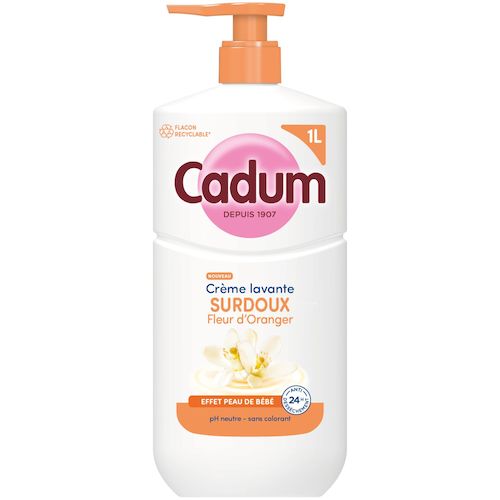 Depuis plus d’un siècle, Cadum met tout son savoir-faire au service de la douceur. Créée en 1907, la marque accompagne les familles avec des soins pensés pour respecter toutes les peaux, même les plus sensibles. Cette crème lavante au parfum Fleur d'Oranger s’inscrit dans cette tradition et offre un moment de confort unique au quotidien. Sa texture crème nettoie délicatement et laisse la peau douce comme celle d'un bébé. Sa formule enrichie en huile d’amande douce bio selectionnée, pour ses vertus naturellement nourisstantes, offre un soin 24h anti-dessèchement. Son parfum frais et floral parfume délicatemment la peau. Testée sous contrôle dermatologique, sa formule au pH neutre, sans savon ni colorant, respecte parfaitement l’équilibre cutané de toute la famille dès 3 ans. Et pour allier soin et responsabilité, Cadum propose désormais un flacon recyclable* et composé à 70 % de plastique recyclé**. Il est aussi plus léger : -10% de plastique par rapport à l’ancien flacon 1L. *Si je
