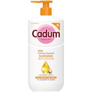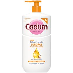 Depuis plus d’un siècle, Cadum met tout son savoir-faire au service de la douceur. Créée en 1907, la marque accompagne les familles avec des soins pensés pour respecter toutes les peaux, même les plus sensibles. Cette Crème lavante surgras au beurre de karité s’inscrit dans cette tradition et offre un moment de confort unique au quotidien. Sa texture crème nettoie délicatement et laisse la peau douce comme celle d'un bébé. Sa formule enrichie en beurre de karité et en huile d’amande douce bio, selectionnée pour ses vertus naturellement nourisstantes, protège la peau du dessèchement. La peau est moins sèche : -39% de sécheresse cutanée**. Elle retrouve souplesse, confort et douceur, sans effet de « peau de croco ». Testée sous contrôle dermatologique, sa formule au pH neutre, sans savon ni colorant, respecte parfaitement l’équilibre cutané de toute la famille dès 3 ans. Et pour allier soin et responsabilité, Cadum propose désormais un flacon rechargeable, recyclable* et composé à 70 %
