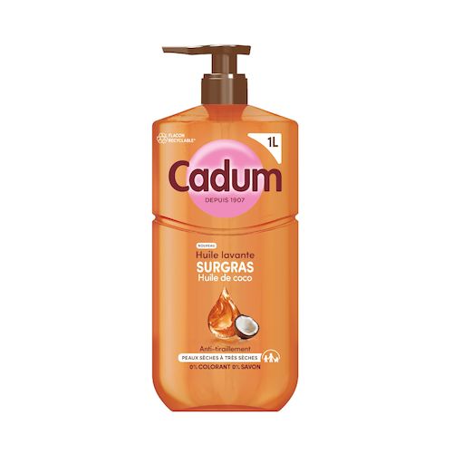 Depuis plus d’un siècle, Cadum met tout son savoir-faire au service de la douceur. Créée en 1907, la marque accompagne les familles avec des soins pensés pour respecter toutes les peaux, même les plus sensibles. Cette huile lavante à l'huile de coco s’inscrit dans cette tradition et offre un moment de confort unique au quotidien. Sa texture huile relipidante nettoie délicatement et laisse la peau douce comme celle d'un bébé. Sa formule enrichie en huile de coco, selectionnée pour ses vertus naturellement nourissantes, protège la peau du dessèchement et préserve son film hydrolipique. La peau est moins sèche : -41% de sécheresse cutanée**. Elle retrouve souplesse, confort et douceur, sans effet de « peau de croco ». Testée sous contrôle dermatologique, sa formule au pH neutre, sans savon ni colorant, respecte parfaitement l’équilibre cutané de toute la famille. Et pour allier soin et responsabilité, Cadum propose désormais un flacon recyclable* et composé à 70 % de plastique recyclé**