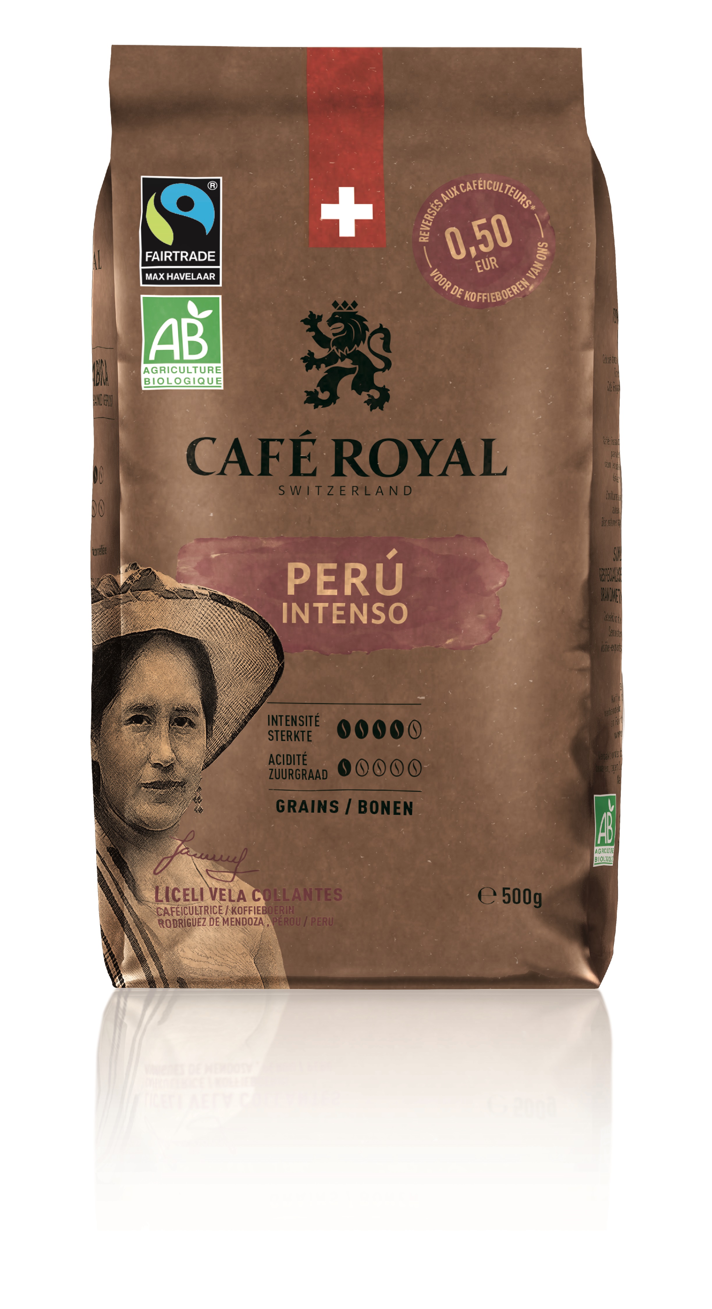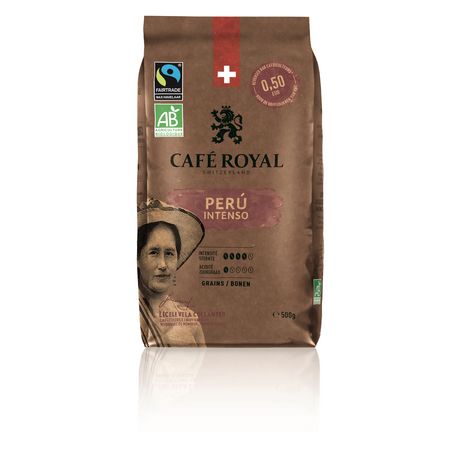 Espresso au élégant aux arômes de cacao et aux notes d'amandes grillées. 100% Arabica du Pérou, cueilli à la main. Ce café est certifié Bio et Fairtrade. Contenu: 500g, grains de café torréfiés.
