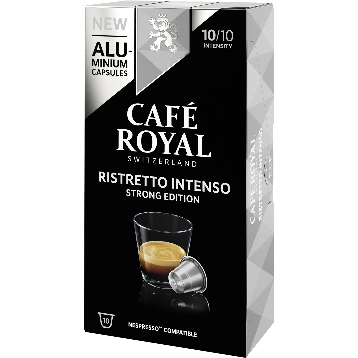 CAFE ROYAL NS Alu Ristretto Intenso x10 Capsules de café compatibles avec le système Nespresso®* Un corps au caractère marqué caractérise ce Café Royal Ristretto Intenso. Laissez-vous séduire par ses notes délicates de chocolat noir et de bois.