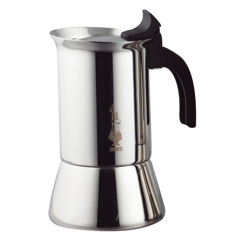 Les détenteurs de plaques induction peuvent enfin utiliser la célèbre cafetière italienne, grâce à ce modèle compatible induction. Corps en inox, manche en bakélite noir athermique pour éviter les brulures. Capacité 0,75L, 6 tasses.