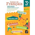 Un nouveau cahier de français en 3e pour un apprentissage méthodique et progressif. - Toutes les dimensions de la langue en 5 parties : Grammaire, Conjugaison et emplois des verbes, Orthographe, Vocabulaire, Expression écrite et orale - Des leçons synthétiques faciles à mémoriser et à compléter - De nombreux exercices de difficulté graduée - Les trois compétences régulièrement entraînées : J'applique pour lire , J'applique pour dire , J'applique pour écrire - Des pages spécifiques Dictées préparées et Méthode - Des bilans auto-évalués pour vérifier ses acquis sur un ensemble de notions - Des jeux et des défis à faire seul(e) ou en binômes, pour rendre la grammaire ludique Niveau 3e SPECIAL BREVET : 40 pages de sujets et de méthodes. Une rubrique Vers le brevet dans chaque fiche pour travailler la réécriture et les sujets d'imagination et de réflexion Les + numériques : - Pour l'élève : de nombreux exercices autocorrectifs supplémentaires ainsi que des audios (dictées, bilans) - Pour l'enseignant : une proposition de progression, des dictées préparées et des sujets brevet supplémentaires