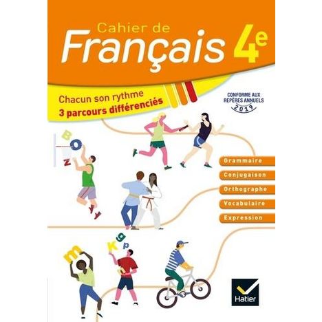 Le cahier de Français 4ème, une aide précieuse à la gestion des altes hétérogènes : - 3 parcours différenciés par notion pour respecter le rythme de chaque élève - Des activités ludiques pour encourager les plus faibles et défier les plus forts - Des aides pour les élèves : méthodes, astuces et cons