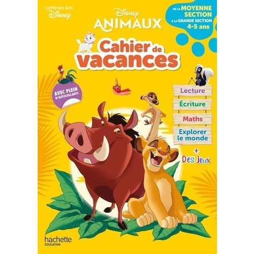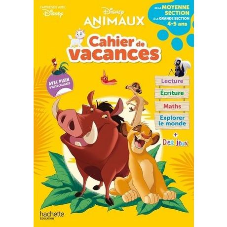 Bienvenue dans l'univers des animaux de Disney ! Ce cahier de vacances pédagogique et ludique est idéal pour consolider les apprentissages fondamentaux de la Moyenne Section. Il propose : - des activités simples et variées (lecture, écriture, maths et exploration du monde) , - une progression dans l