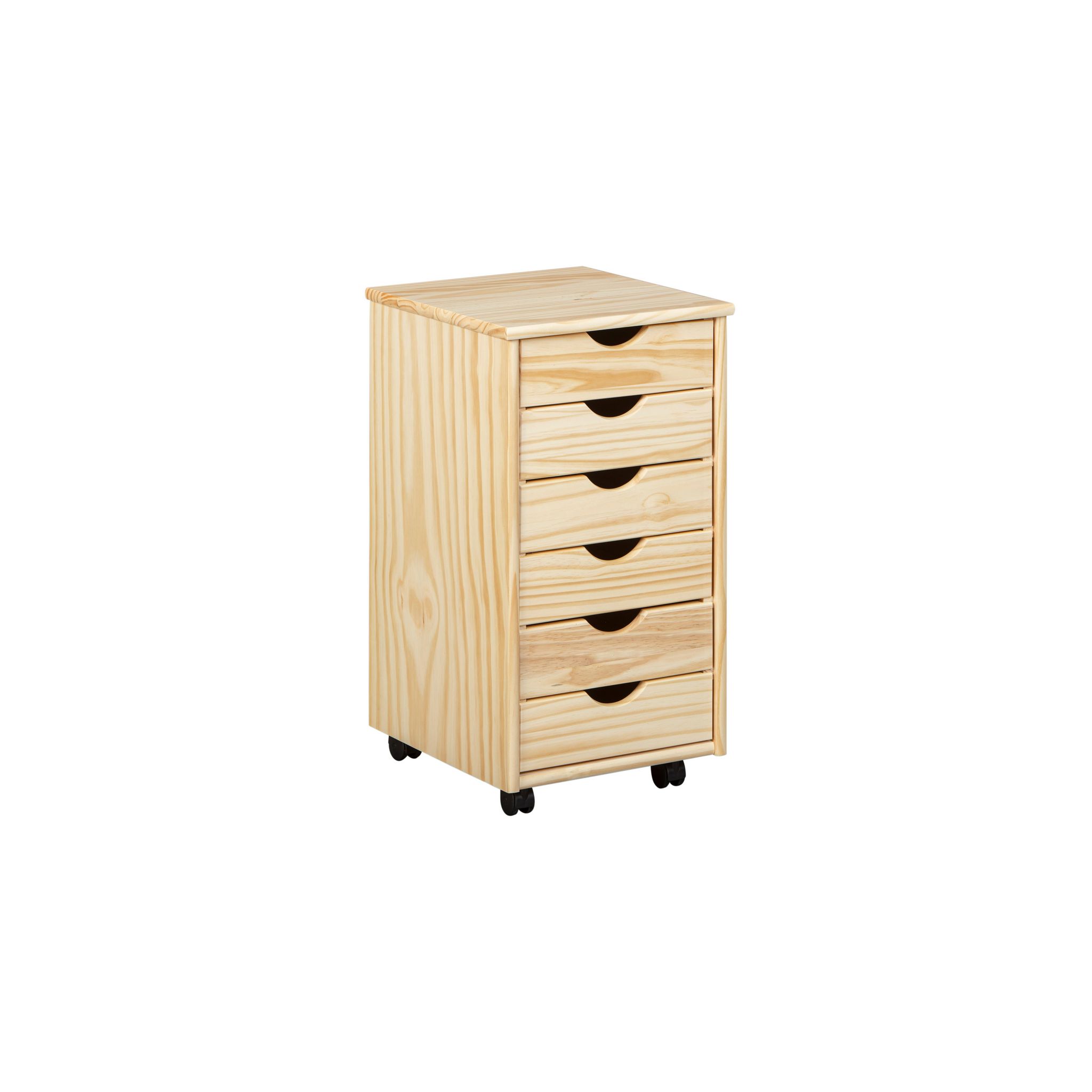Ce caisson ULLI est idéal pour être glissé sous/à côté d'un bureau et obtenir ainsi un espace de rangement pour vos documents ou autres fournitures de bureau. Il est muni de 4 roulettes permettant de le déplacer facilement où vous le souhaitez. Le pin massif lui procure qualité et solidité et s'accordera facilement dans tous types de pièces.