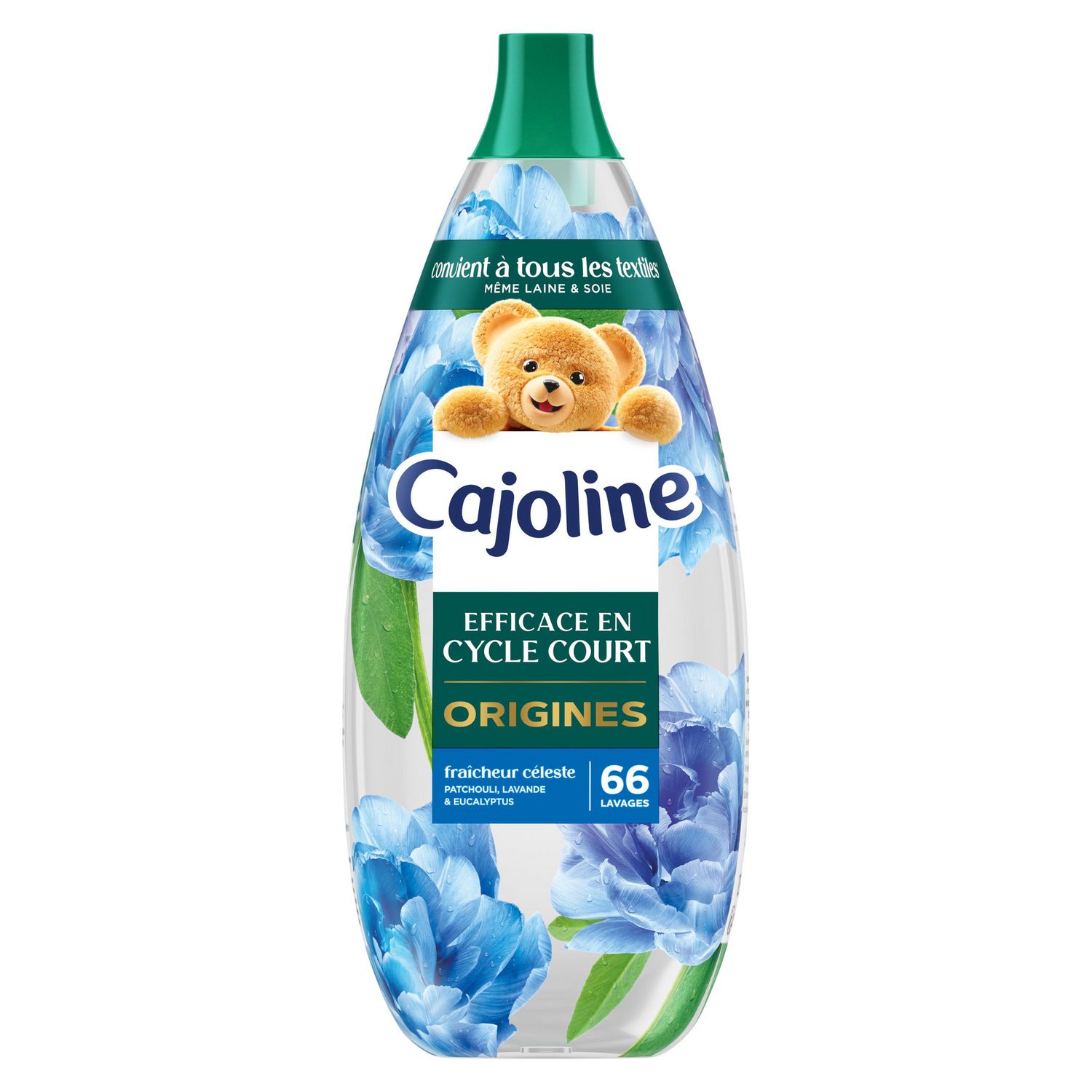 L'adoucissant Cajoline Origines Fraîcheur Céleste 66 Lavages s'adapte à tous les textiles¹ y compris laine, la soie et les tissus synthétiques. Conçu pour les cycles courts et grâce à la technologie deposée CrystalFresh™, cet adoucissant facilite la respirabilité des tissus² et enveloppe vos textiles d'une fraîcheur longue durée. Avec sa formule testée dermatologiquement et sans colorants, Cajoline Fraîcheur Céleste laisse sur votre linge un parfum frais de patchouli, de lavande et d'eucalyptus. Instructions de dosage : versez dans le bac à produit 19 ml d'adoucissant pour 4-5kg de linge. Pour de l'extra parfum, utilisez un bouchon entier et ajoutez Cajoline Booster de Parfum Elixir Fraîcheur Céleste. Depuis plus de 50 ans, la marque d'adoucissant Cajoline prend soin de vos vêtements et de ceux de toute votre famille à travers différentes gammes dédiées au soin et au parfum. La marque à l'ourson a pour ambition d'apporter une douceur exceptionnelle à vos vêtements, tout en les préservant de l'usure quotidienne et toujours en offrant une vague de fraîcheur et de parfum à votre linge, à chaque lavage. ¹Suivez les étiquettes de lavage de vos textiles. ²Test de laboratoire pour une dose de 30 ml. Évaluation de la respirabilité des tissus dont laine, soie et tissus synthétiques vs Cajoline Jasmin & Orchidée.