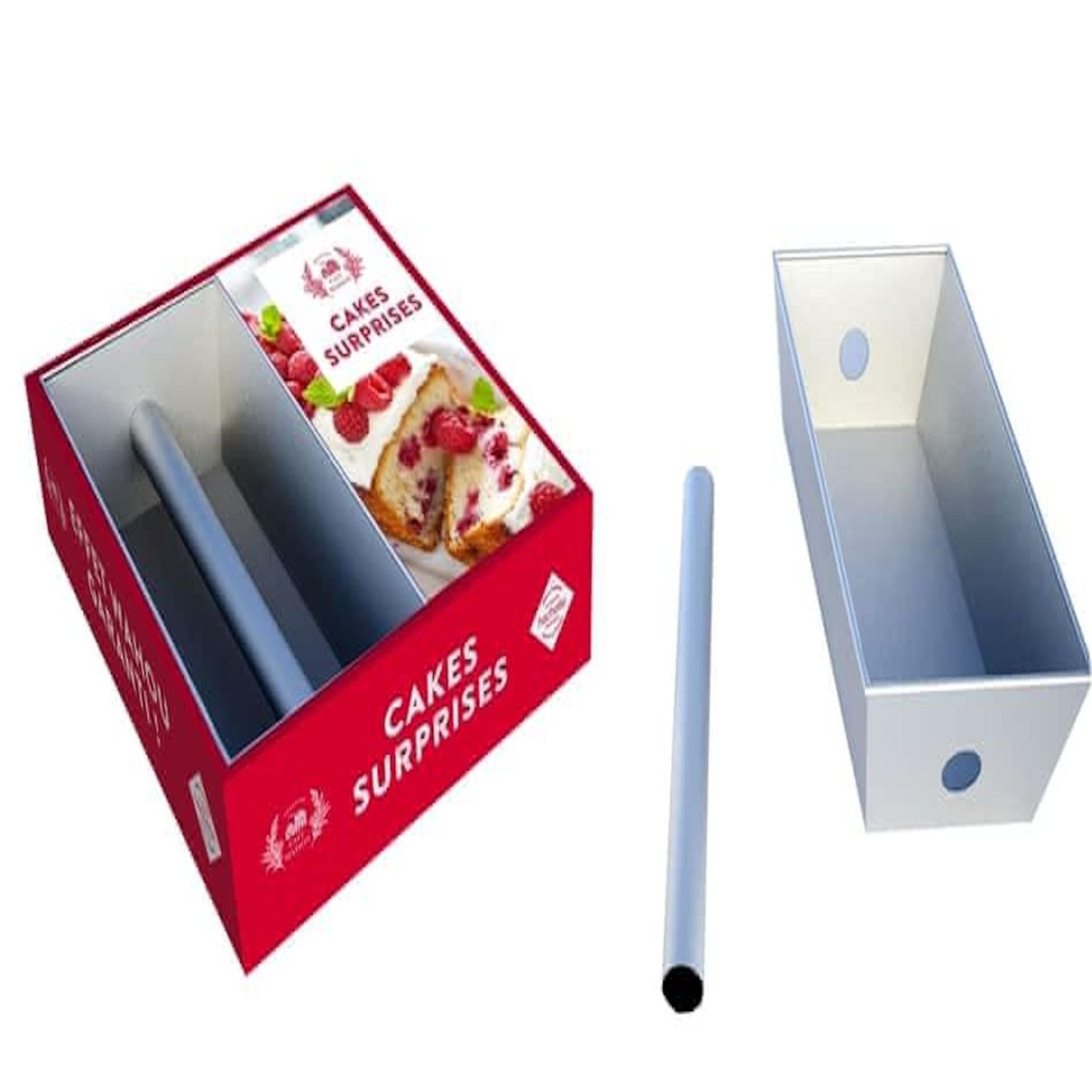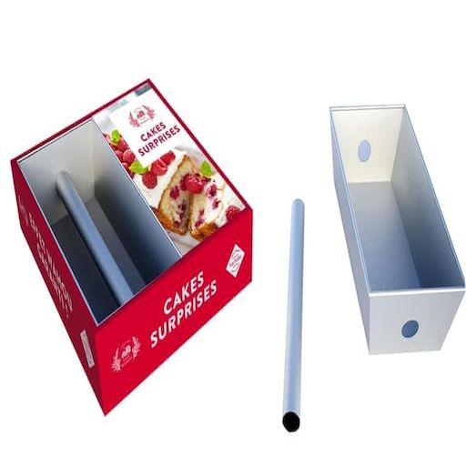 Cakes surprises, effet wahou garanti ! Surprenez vos amis et votre famille en proposant des cakes avec des inserts fabuleux : ganache praliné noisettes, caramel tendre aux cacahuètes, crémeux citron, chantilly... Ce coffret comprend : -1 moule à cake avec insert tube en inox -1 livre avec des recettes de cakes avec insert Dimension du moule : 120 x 258 x 70 mm Dimension du tube : 20 mm