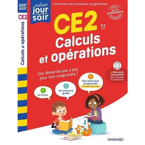 Revoir les fondamentaux du calcul au CE2 et s'entraîner - Une démarche efficace et progressive pour consolider les bases en mathématiques CE2 : opérations posées, calcul en ligne, calcul mental, problèmes 1. Des leçons synthétiques pour retenir l'essentiel 2. Des exercices guidés pour bien comprendre le raisonnement 3. Des exercices variés et progressifs pour s'entraîner - Des mémos visuels pour retenir l'essentiel (les tables de multiplication, la technique de la division) - Le + : des quiz numériques interactifs, sur toutes les notions du programme, pour s'évaluer et progresser de manière ludique, accessibles via des QR codes - Le + pour les parents : un cahier central détachable avec tous les corrigés