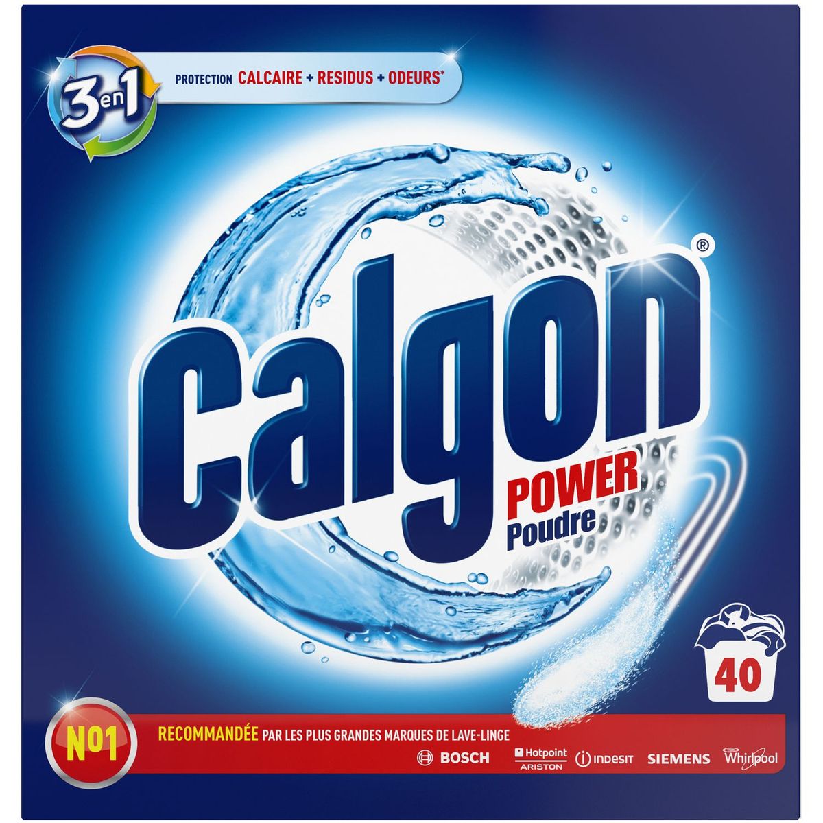 A chaque lavage Calcaire, résidus de lessive et saletés s’accumulent dans le tambour, le filtre et les tuyaux. Ils peuvent être à l’origine des pannes de machine mais aussi des mauvaises odeurs. Calgon 3en1, utilisé à chaque lavage protège les parties vitales de votre lave-linge pour qu’il dure plus longtemps !